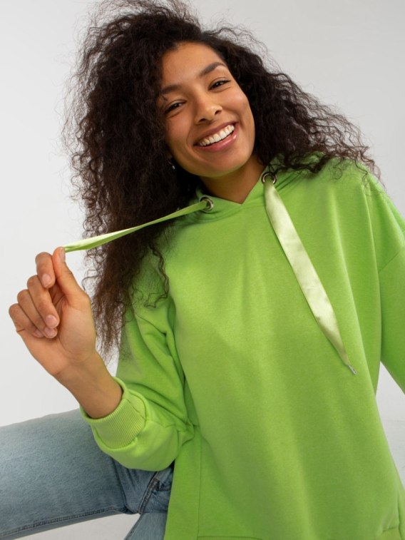Jasnozielona dresowa bluza z kapturem i troczkami .