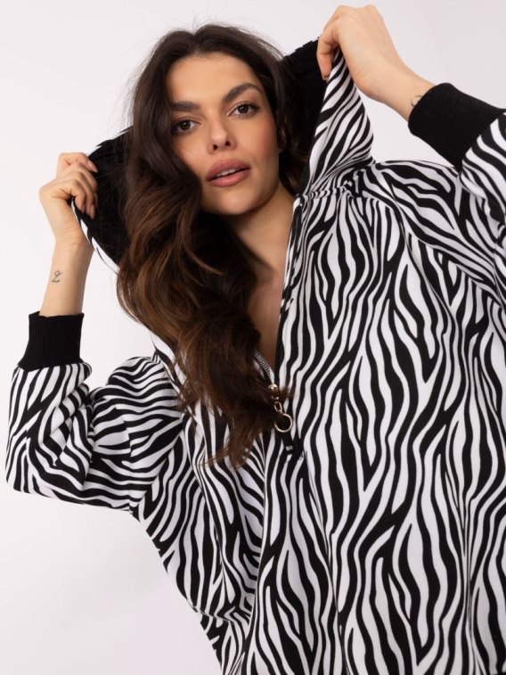 Wymiary bluzy w rozmiarze one size: szerokość pod pachami - 70 cm, długość bluzy - 65 cm, długość rękawa - 30 cm (od pachy), obwód w biodrach - 104 cm (na płasko), obwód w biodrach - 160 cm (po rozciągnięciu) .