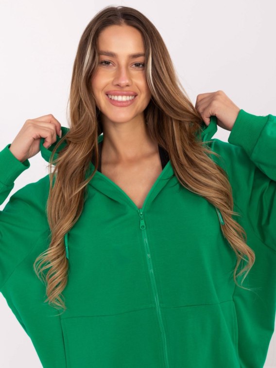 Wymiary bluzy w rozmiarze one size mierzone na płasko: szerokość pod pachami - 65 cm, długość całkowita - 67 cm, szerokość na dole - 58 cm, długość rękawa - 75 cm.