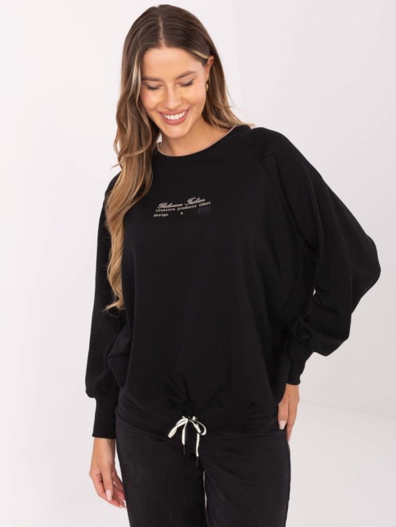 Wymiary bluzy w rozmiarze one size mierzone na płasko: szerokość pod pachami - 65 cm, szerokość w biodrach - 53 cm, długość rękawa - 53 cm (od szwu), długość całkowita - 67 cm.