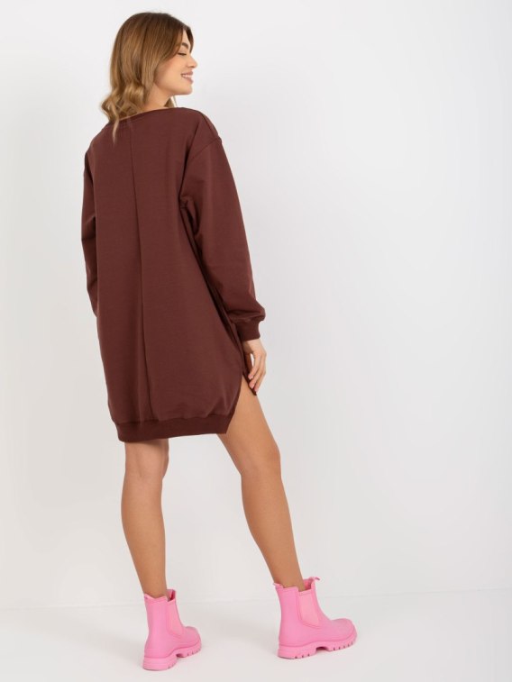 Ciemnobrązowo-pamarańczowa długa bluza oversize z napisem .