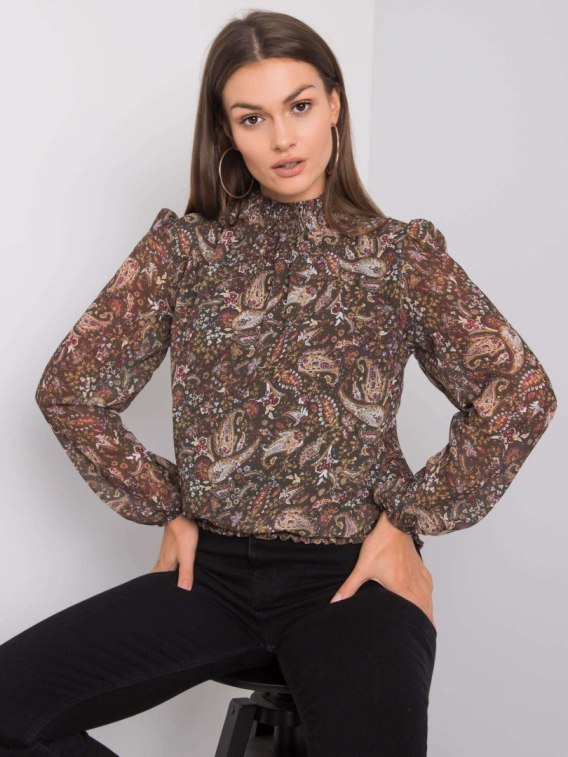 SUBLEVEL Ciemnozielona bluzka we wzory.