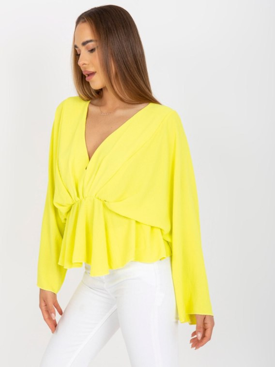 Wymiary bluzki w rozmiarze one size mierzone na płasko: szerokość pod pachami - 57 cm, długość całkowita - 57 cm, długość rękawa - 56 cm.