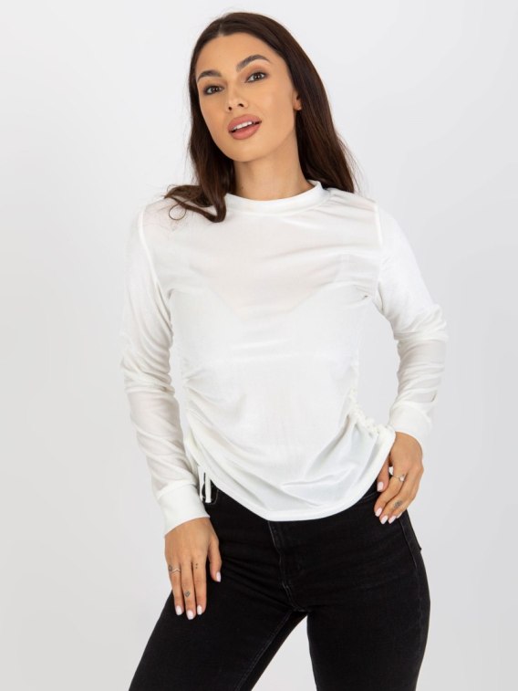Brudnoróżowa krótka bluzka welurowa z okrągłym dekoltem .