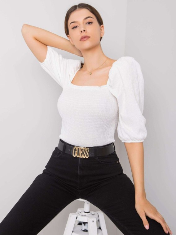 RUE PARIS Biała bluzka z bufiastymi rękawami.