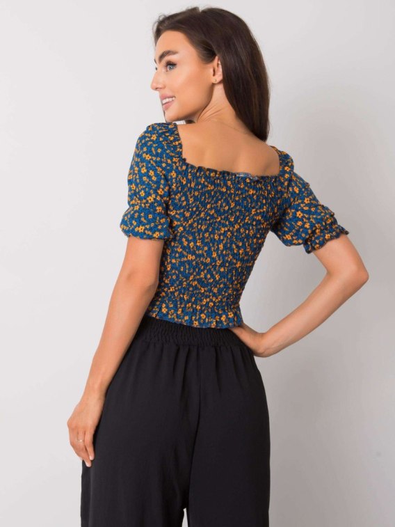 RUE PARIS Niebieska bluzka w kwiatowe wzory.