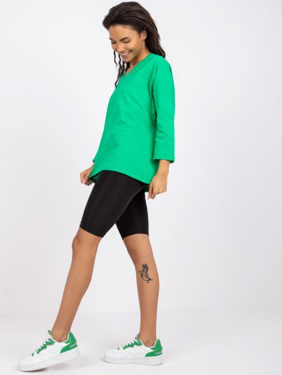 Wymiary bluzki w rozmiarze S/M mierzone na płasko: szerokość pod pachami - 60 cm, długość całkowita - 63 cm, długość rękawa - 46 cm.