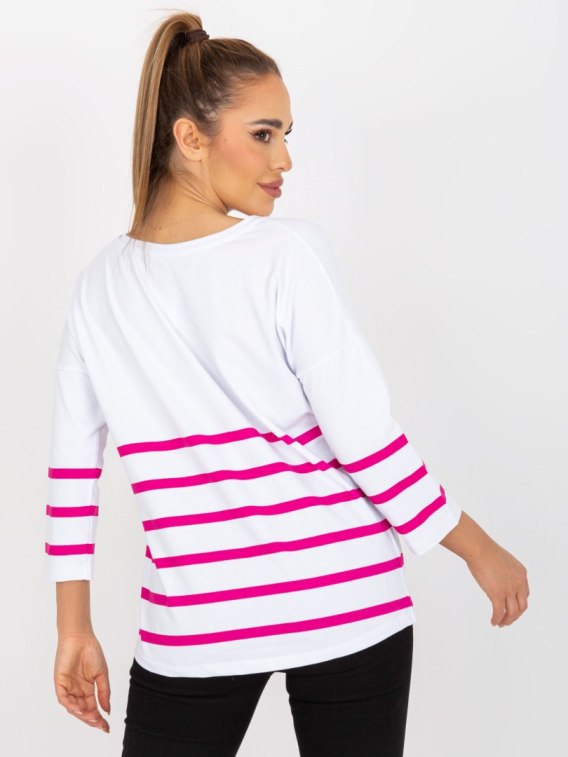 Biało-fuksjowa bluzka basic z rękawem 3/4 RUE PARIS .