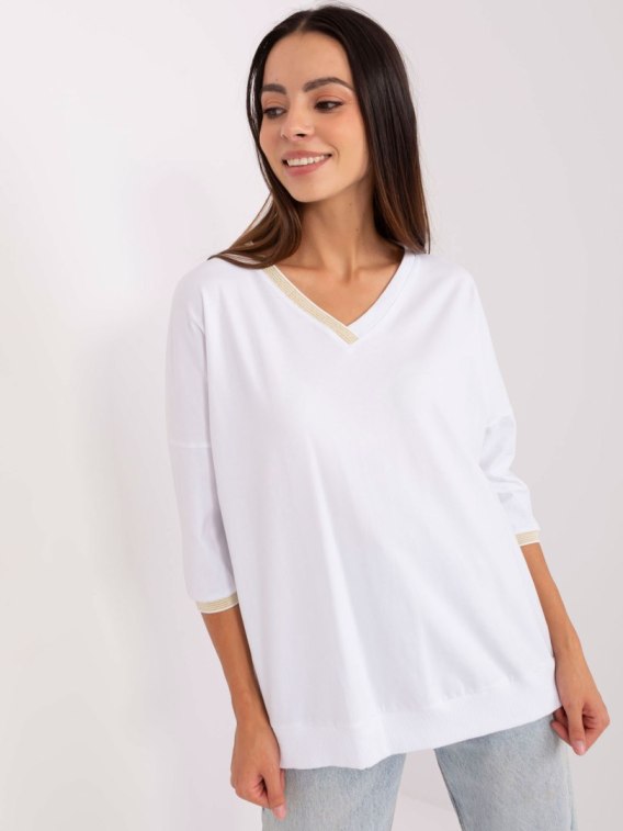 Biała bluzka oversize z dekoltem V RUE PARIS .