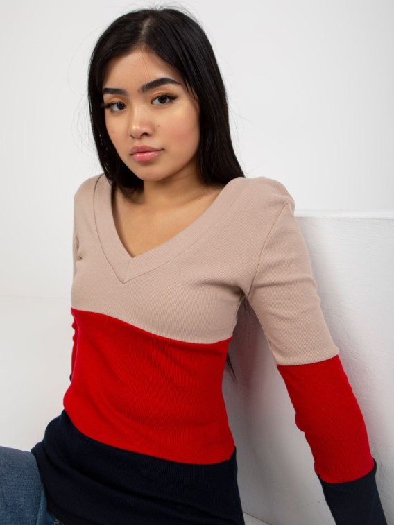Beżowo-granatowa damska bluzka basic w prążek RUE PARIS .