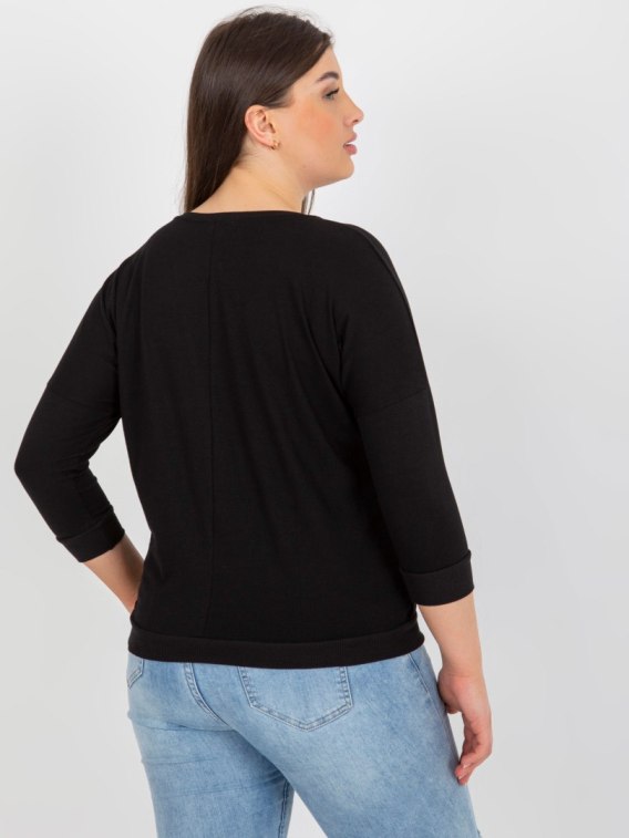 Czarna bluzka plus size z błyszczącym nadrukiem .