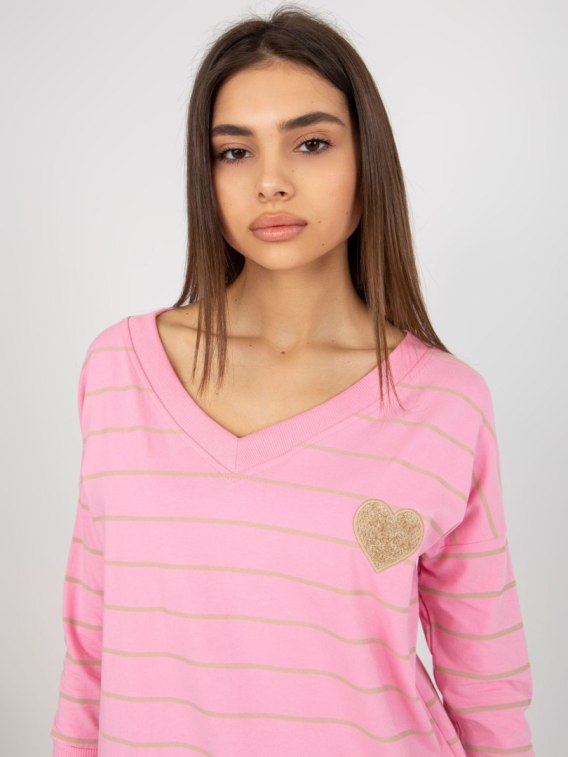 Różowo-beżowa bawełniana bluzka w paski BASIC FEEL GOOD .