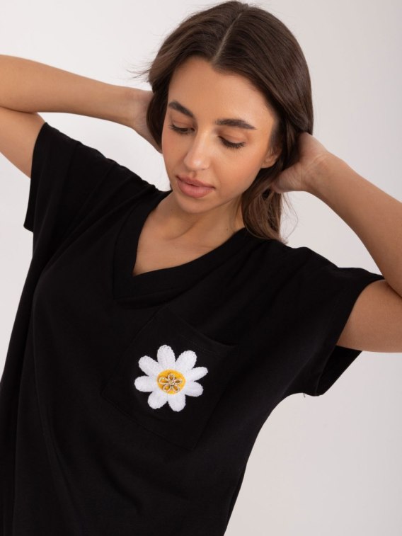 Wymiary bluzki w rozmiarze S/M mierzone na płasko: szerokość pod pachami - 58 cm, długość całkowita - 59 cm.