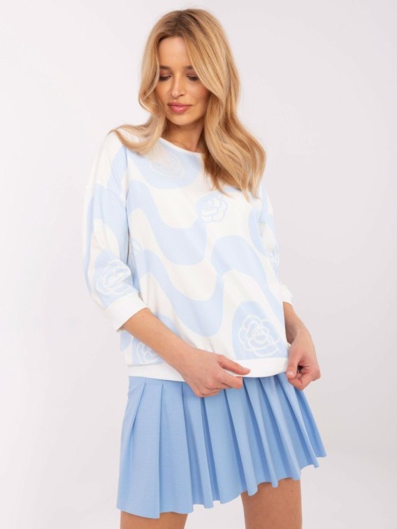 Wymiary bluzki w rozmiarze one size mierzone na płasko: szerokość pod pachami - 58 cm, długość rękawa - 33 cm (od szwu), długość całkowita - 61 cm, szerokość w biodrach - 50 cm (na płasko).