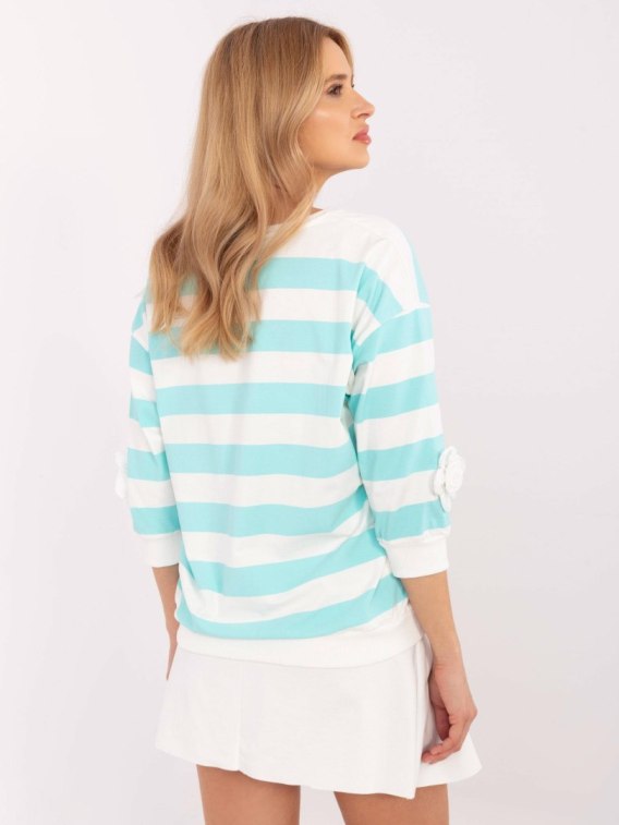 Wymiary bluzki w rozmiarze one size mierzone na płasko: szerokość pod pachami - 59 cm, długość rękawa - 36 cm (od szwu), długość całkowita - 62 cm, szerokość w biodrach - 49 cm (na płasko).
