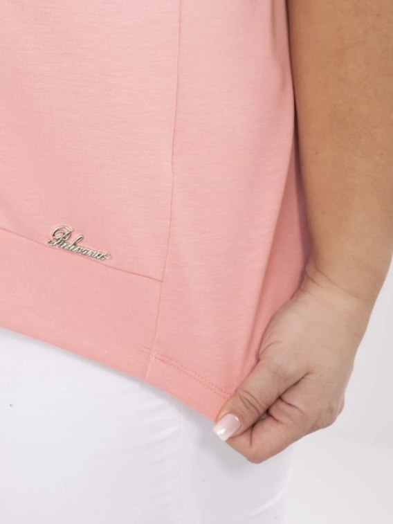 Wymiary bluzki w rozmiarze one size mierzone na płasko: szerokość pod pachami - 65 cm, długość rękawa - 28 cm (od szwu), szerokość w biodrach - 62 cm, długość całkowita - 63 cm (przód), długość całkowita - 69 cm (tył).