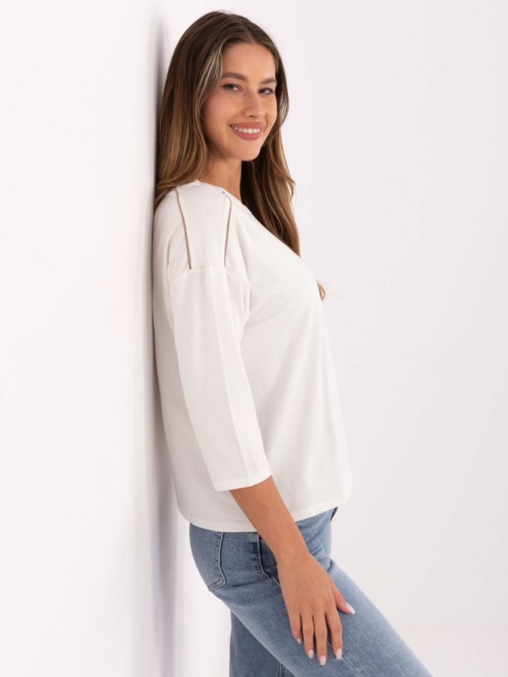 Wymiary bluzki w rozmiarze one size mierzone na płasko: szerokość pod pachami - 57 cm długość rękawa - 36 cm (od szwu), szerokość w biodrach - 53 cm, długość całkowita - 60 cm.