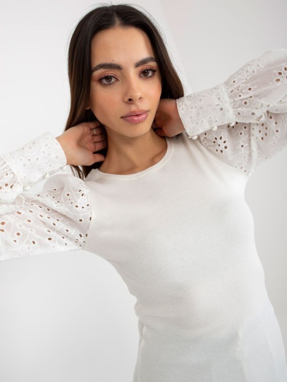 Biała prążkowana bluzka wizytowa z ozdobnymi rękawami OCH BELLA .