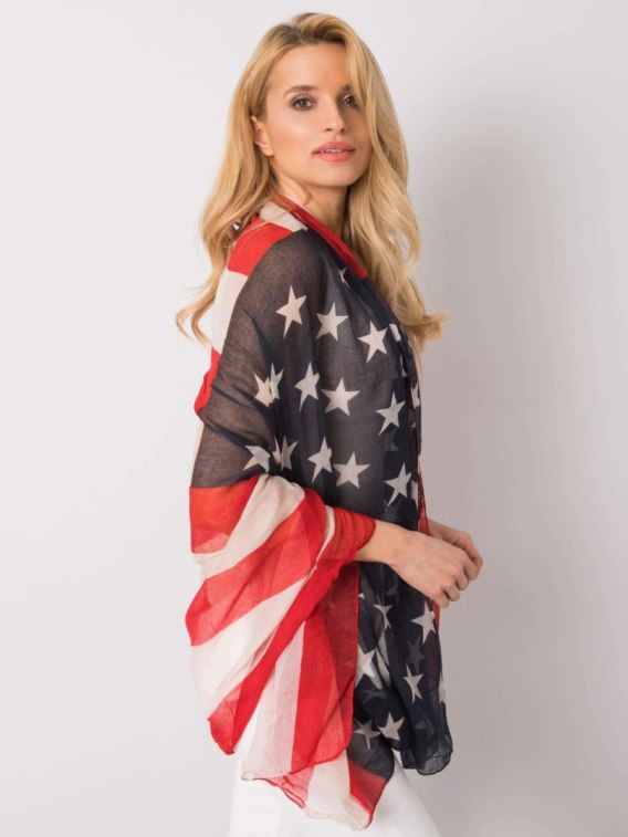 Biało-czerwona chusta z nadrukiem.