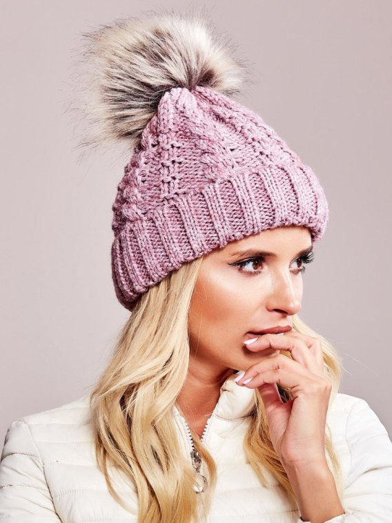 Czapka ze ściegiem warkoczowym różowa