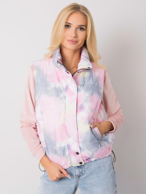 Szaro-różowa kamizelka bez kaptura.