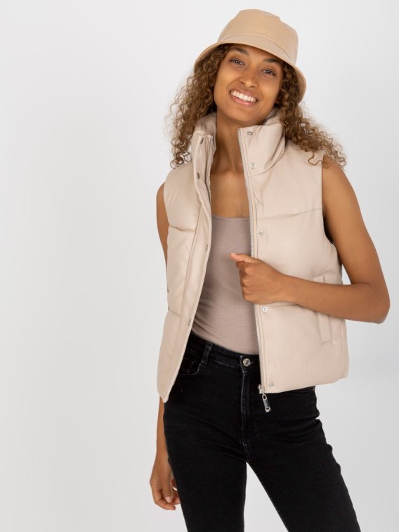 Jasnobeżowa pikowana kamizelka z eko skóry .