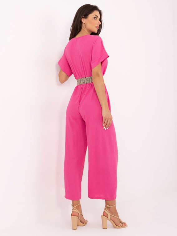 Wymiary kombinezonu w rozmiarze one size mierzone na płasko: szerokość pod pachami - 50 cm, szerokość w talii - 31 cm (na płasko), szerokość w talii - 57 cm (po rozciągnięciu), szerokość w biodrach - 50 cm, długość całkowita - 133 cm.