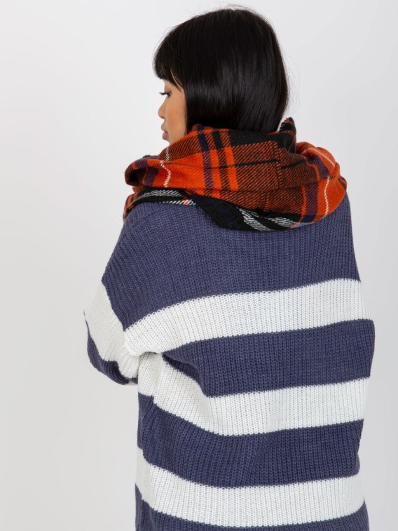 Pomarańczowo-czarny komin z nadrukiem w kratę .