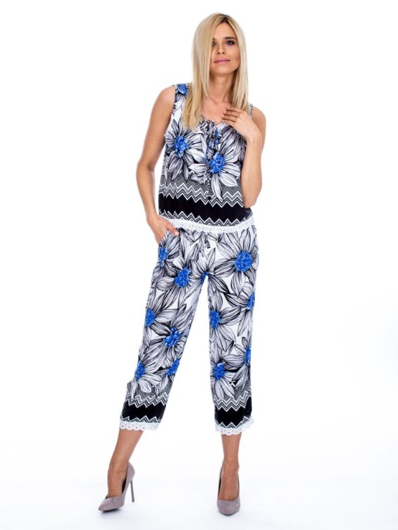 Komplet w kolorowe wzory top i spodnie czarno-niebieski.