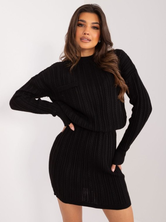 Wymiary kompletu w rozmiarze one size mierzone na płasko: szerokość swetra pod pachami - 64 cm, długość rękawa - 66 cm, długość swetra - 55 cm, szerokość spódnicy w pasie- 30 cm, długość spódnicy- 45 cm .