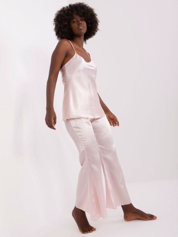 Jasnoróżowa trzyczęściowa piżama ze spodniami .