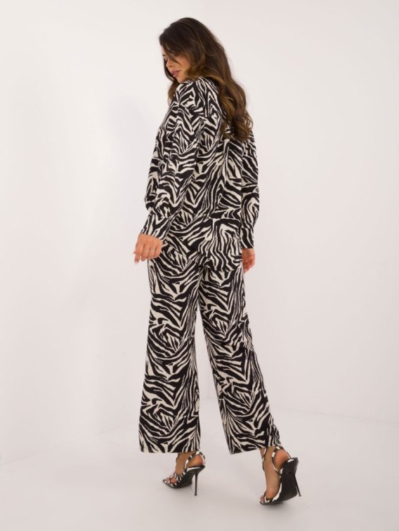 Wymiary kompletu w rozmiarze one size mierzone na płasko: szerokość koszuli pod pachami - 54 cm, długość koszuli - 75 cm, długość rękawa - 56 cm, szerokość spodni w pasie - 37 cm, wysokość stanu - 35 cm, długość spodni - 97 cm.