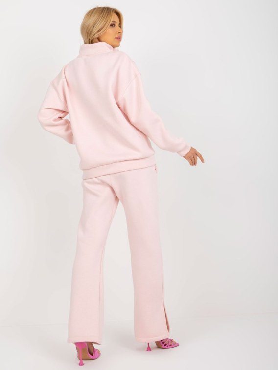Jasnoróżowy trzyczęściowy komplet dresowy ze spodniami .