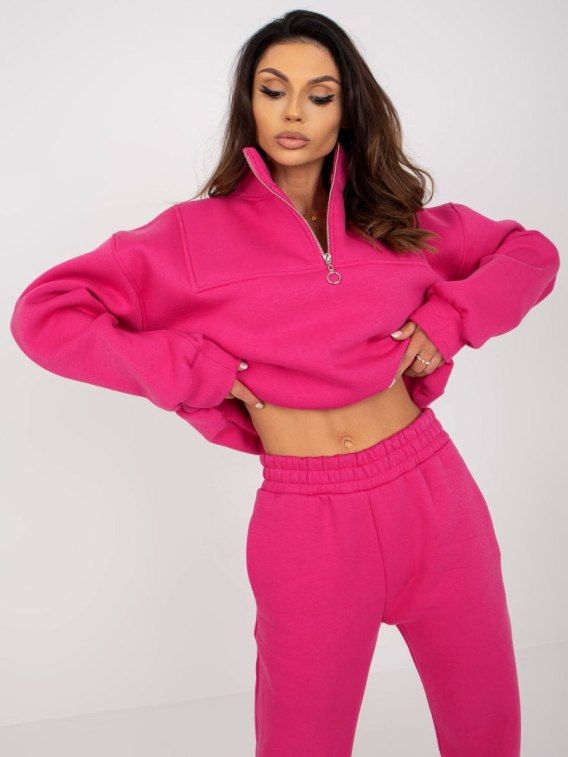 Fuksjowy dresowy komplet basic ze spodniami z rozcięciem .