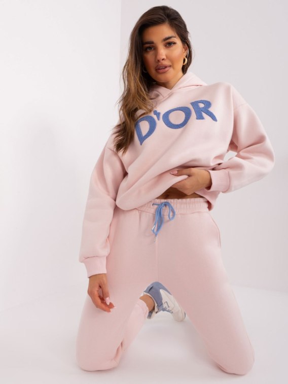 Jasnoróżowy ocieplany komplet dresowy z bawełny.