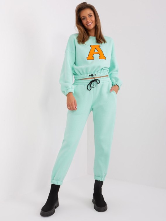 Miętowo-fluo pomarańczowy komplet dresowy z literą A .