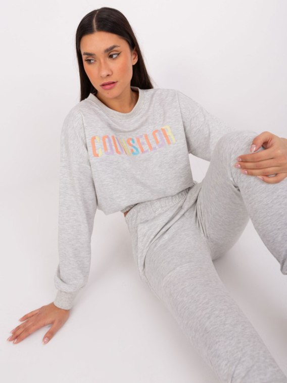 Czarny bawełniany komplet z bluzą z kolorowym napisem .