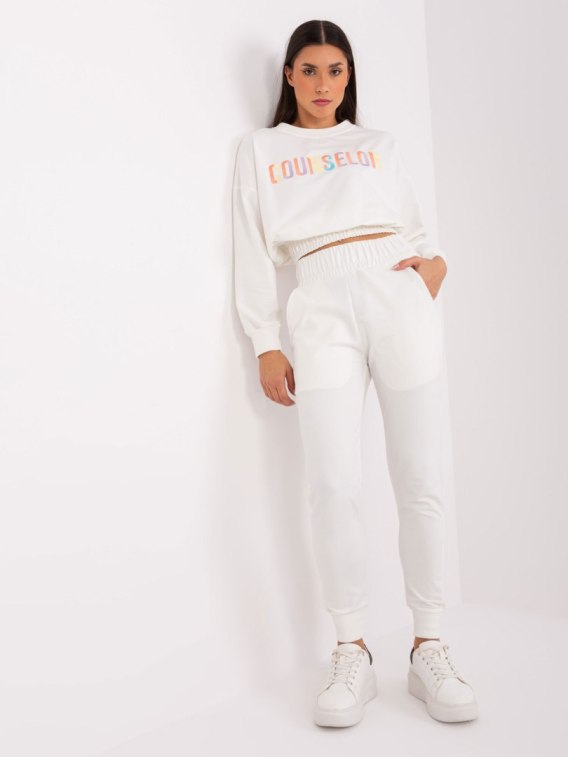 Ecru casualowy komplet z krótką bluzą .