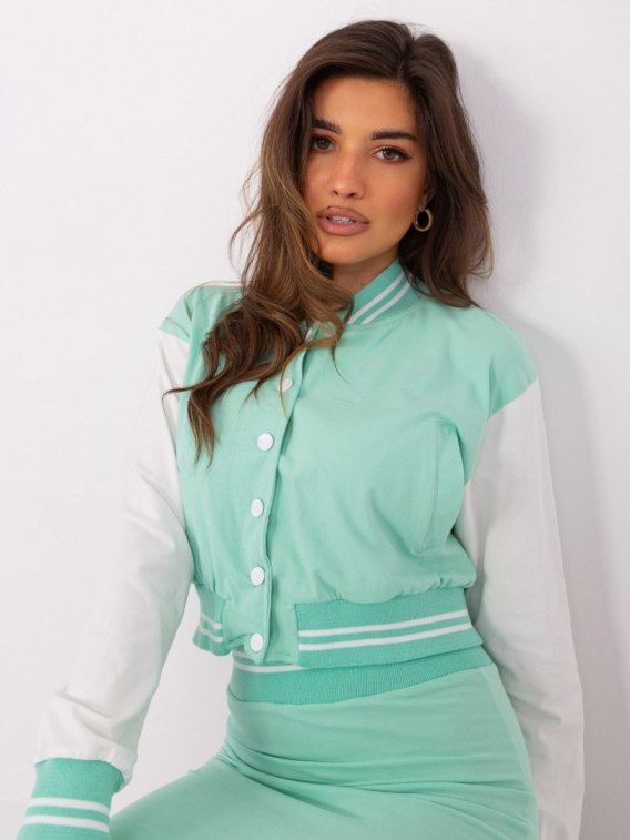 Miętowy komplet casualowy z bluzą bomberką .