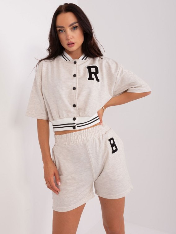Jasnobeżowy melanżowy dwuczęściowy komplet damski.