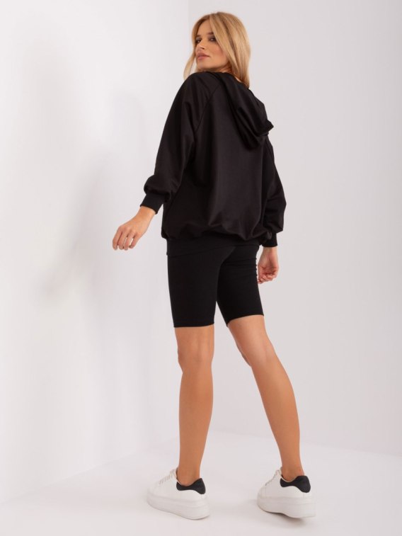 Czarny trzyczęściowy komplet casualowy z szeroką bluzą.