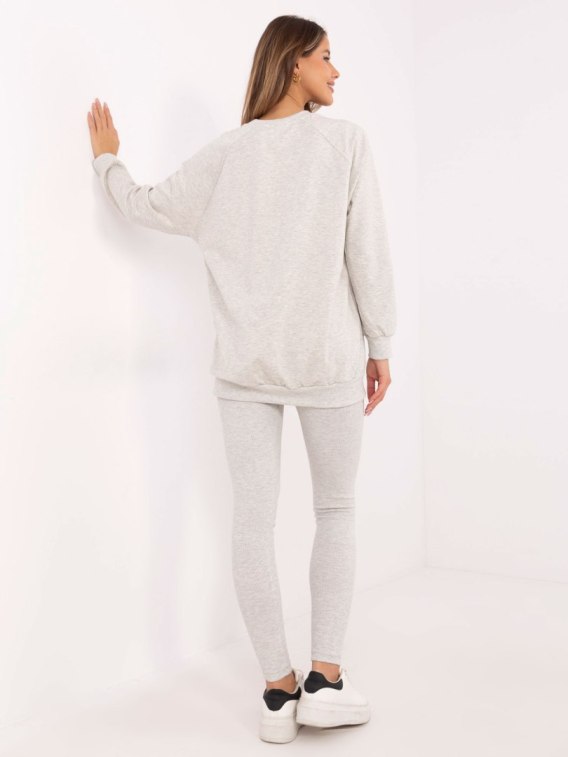 skład materiału bluzy: 72% bawełna, 22% poliester, 6% elastan; skład materiału legginsów: 90% bawełna, 10% elastan