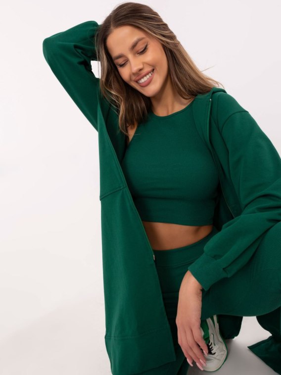 skład materiału bluzy: 72% bawełna, 22% poliester, 6% elastan; skład materiału legginsów i topu: 90% bawełna, 10% elastan