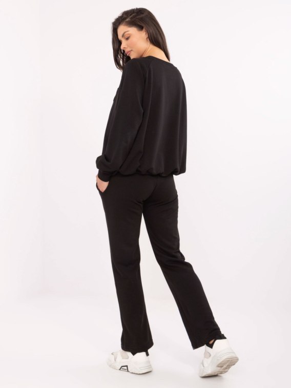 Wymiary kompletu w rozmiarze one size mierzone na płasko: szerokość bluzy pod pachami - 68 cm, długość bluzy - 67 cm, długość rękawa - 64 cm, szerokość spodni w pasie - 33 cm, wysokość stanu - 34 cm, długość spodni - 105 cm.