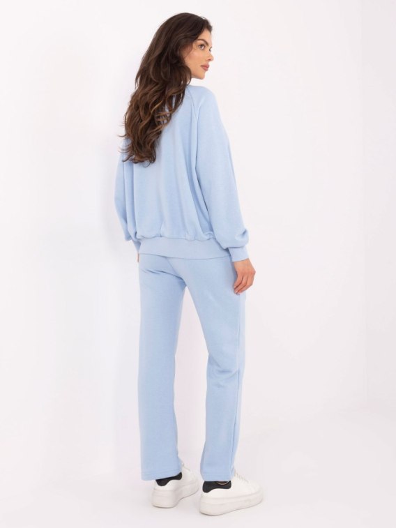 Wymiary kompletu w rozmiarze one size mierzone na płasko: szerokość bluzy pod pachami - 68 cm, długość bluzy - 67 cm, długość rękawa - 64 cm, szerokość spodni w pasie - 33 cm, wysokość stanu - 34 cm, długość spodni - 105 cm.