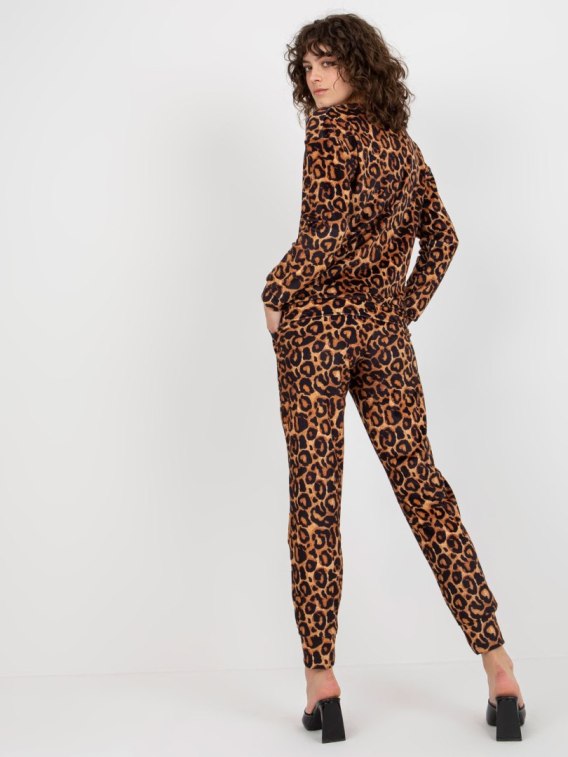 Ciemnobeżowo-czarny komplet welurowy z printem .