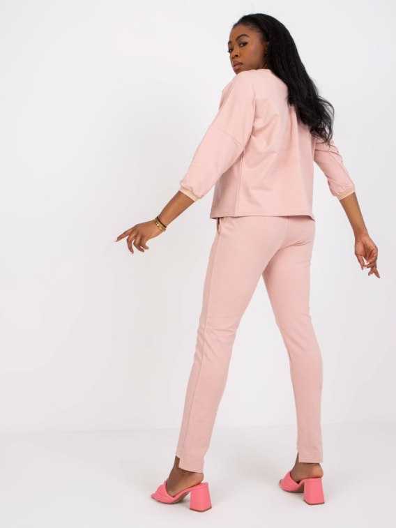 Wymiary kompletu w rozmiarze S/M mierzone na płasko: szerokość bluzy pod pachami - 64 cm, długość rękawa - 46 cm, długość bluzy - 57 cm, szerokość spodni w pasie - 36 cm, długość spodni - 101 cm.