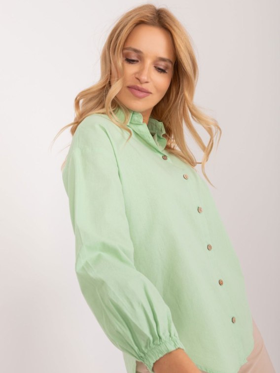 Wymiary koszuli w rozmiarze S mierzone na płasko: szerokość pod pachami - 55 cm, długość rękawa - 55 cm, długość całkowita (przód) - 66 cm, długość całkowita (tył) - 73 cm.