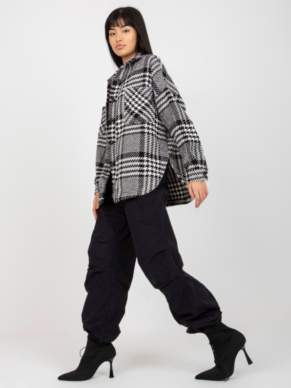 Czarno-biała ciepła koszula wierzchnia w pepitkę .