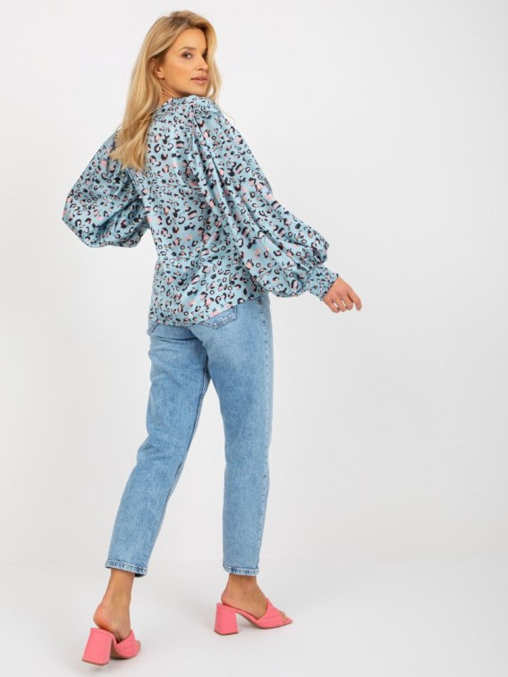 Niebiesko-czarna koszula w panterkę z imitacji satyny .